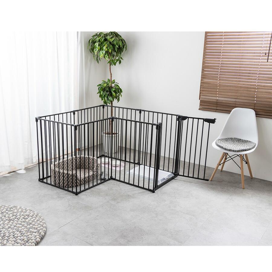 犬 ゲージ 8枚セット L字 Mサイズ おしゃれ アイアン ケージ サークル フェンス A 送料無料 ブラック ペット ペットケージ ペットサークル 中型犬 北欧 小型犬 広い 折り畳み 柵 正方形 黒 在庫一掃 Mサイズ